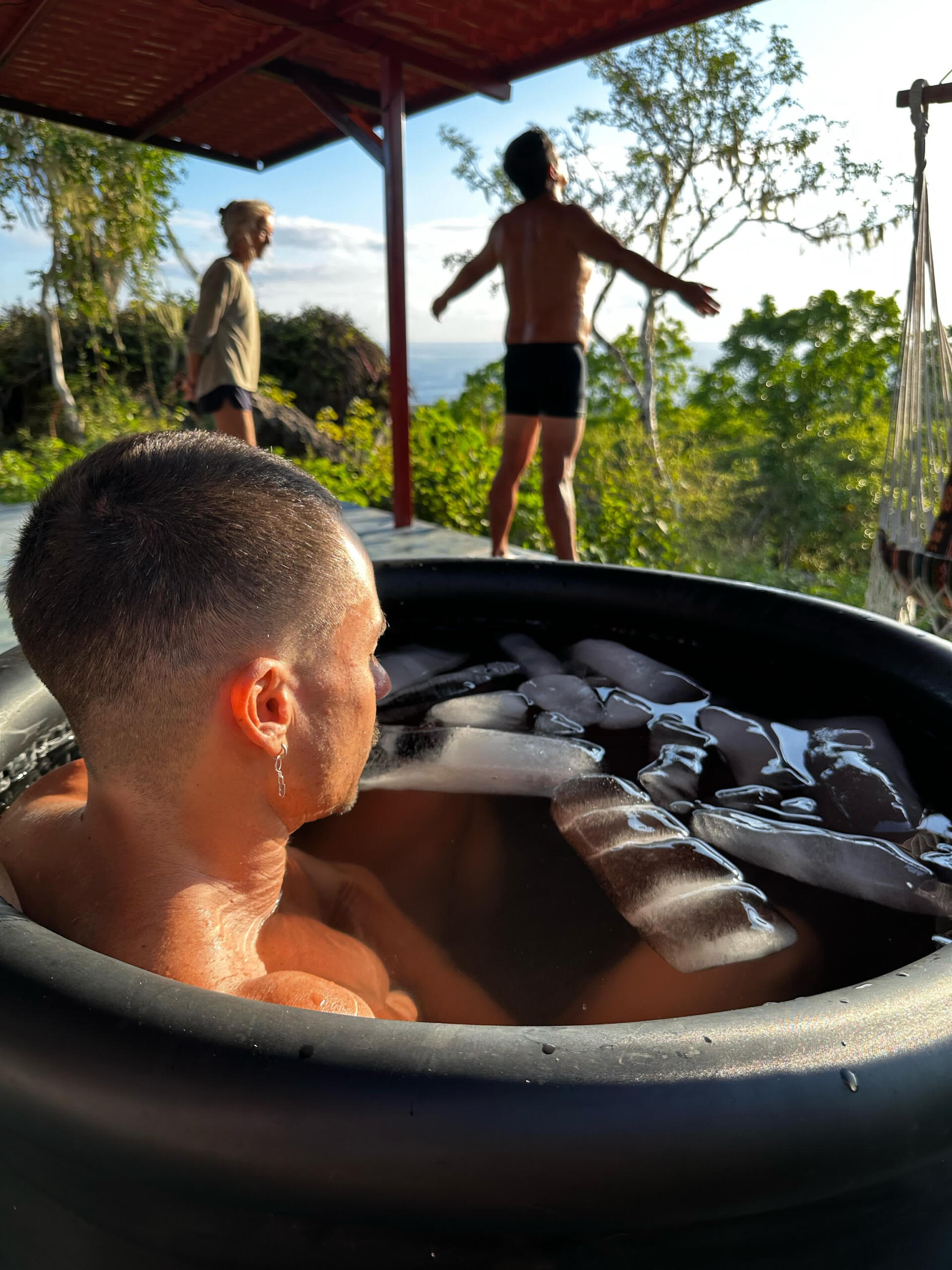 Wim Hof ice bath sessions: Cold exposure guided with breath and focus to build inner strength, presence, and resilience.